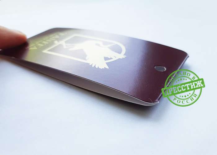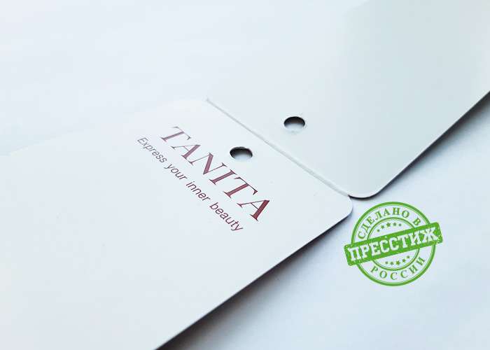 При изготовлении картонных ярлыков книжечкой применяется технология биговки пополам. Что такое биговка? Это создание прямой бороздки на картоне или другом плотном материале методом продавливания. Биговка помогает проводить качественные сгибы по плотной бумаге или картону, предотвращая развитие деформаций и растрескивание слоя краски.