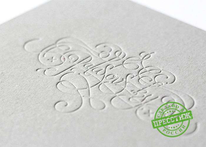 Это тиснение без использования декоративных материалов. Печать выдавливает эмблему настолько качественно, что в готовом виде узор имеет четкое очертание, рельеф легко разглядеть, он хорошо прощупывается. Но не так бросается в глаза, как конгрев. Поэтому такое тиснение часто используется для продукции в деловом и рекламном стиле.